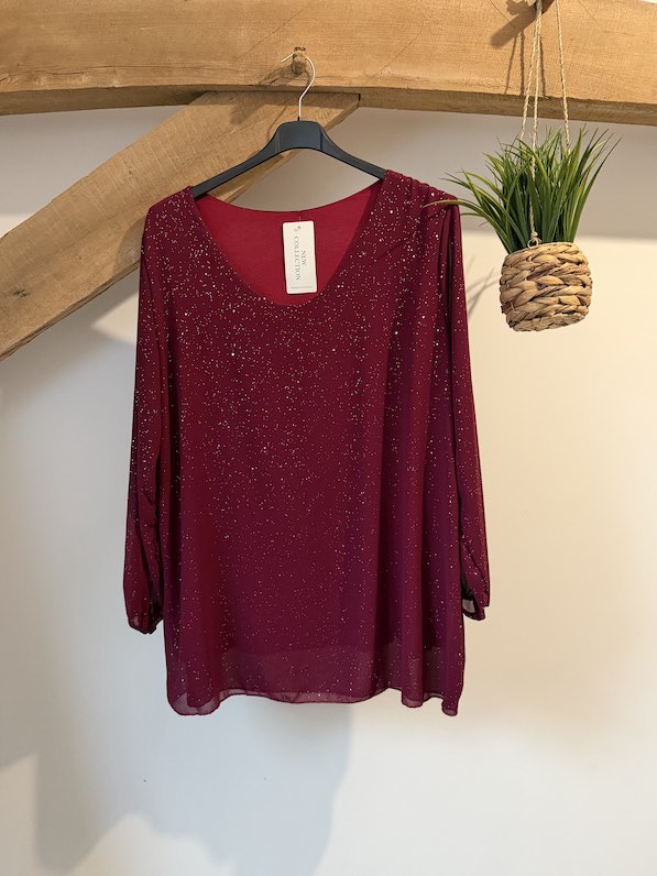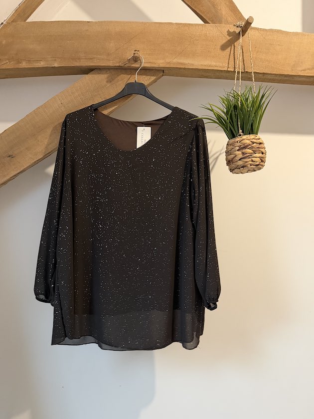 Blouse voile doublée éclat avec feuilles argentées