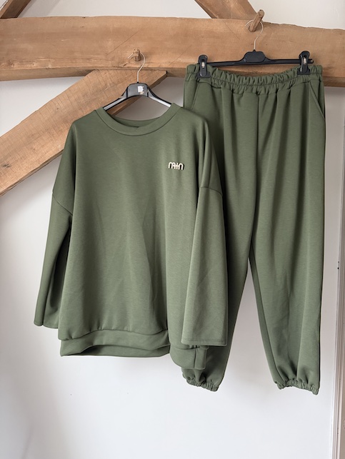 Ensemble jogging kaki T44/50 Compo : 50% polyester, 35% viscose et 5% élasthane.