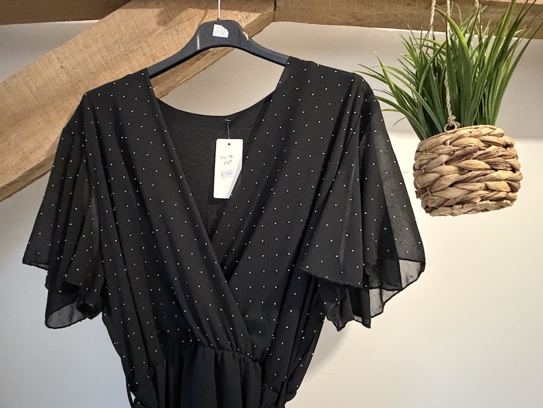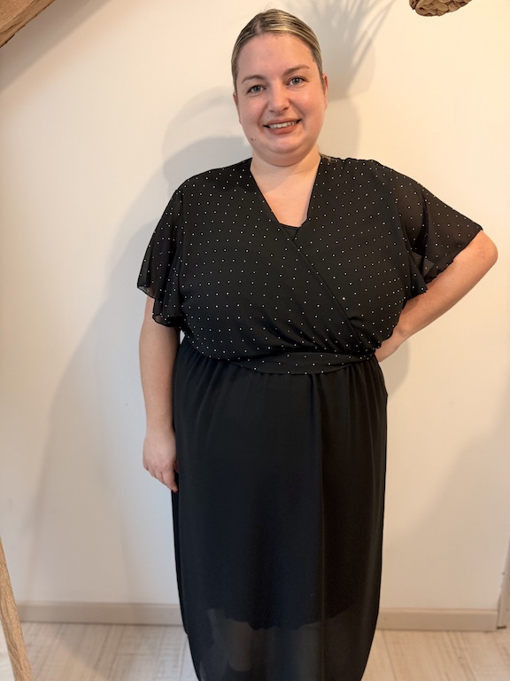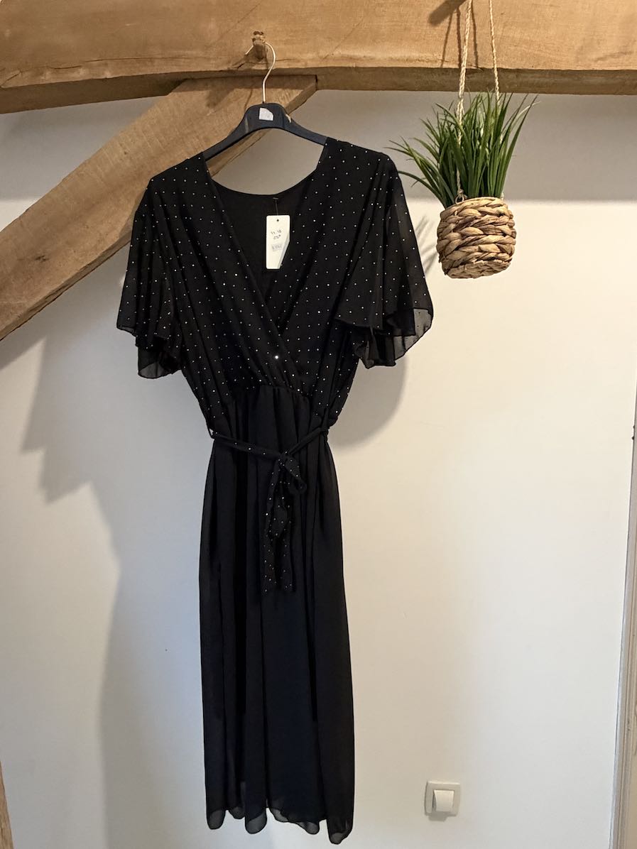 Robe doublée décolleté cache – cœur avec strass au niveau de la poitrine.