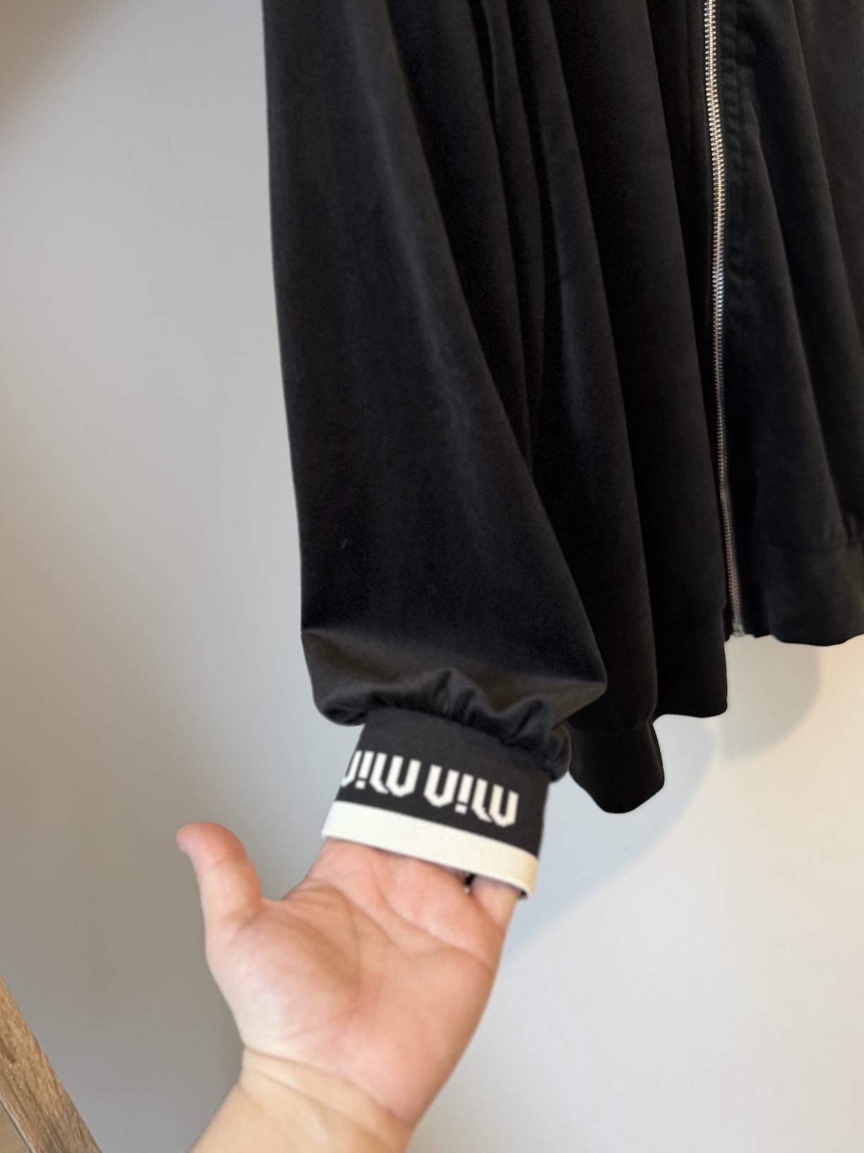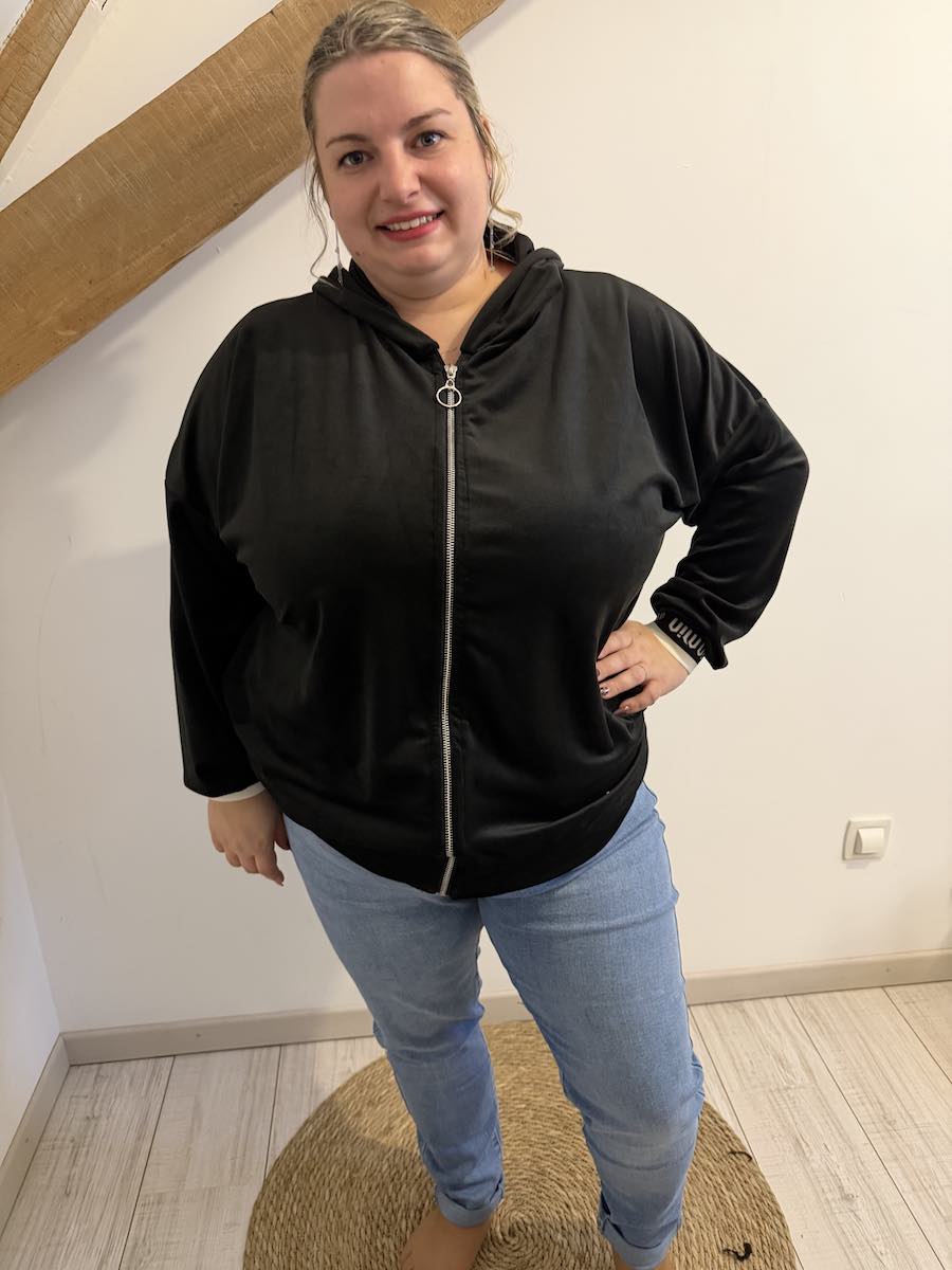 Veste velours avec motif sur les manches et capuche.